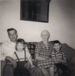 | On the left, Dad, me, Granny Jo, and my brother John, about 1953.