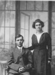Leo and Pearl English Wilks, about 1915. Leo was the oldest son of James Rufus and Oddie E. Day Wilks. Pearl was the daughter of James R. and Sophia English. In the 1950's and 1960's the Wilks family reunions were held at Leo Wilks farm, south east of Auxvasse every year. Leo and Pearl were married on December 1, 1915 and had 4 children. Leo was born in 1894 and lived to be 101 years old.