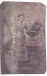 Permelia Frances Overton Day, daughter of Benjamin F. and Ann S. Holt Overton of Callaway Co. Mo. She was the first wife of Sanders Perfect Day. Permelia was my 2nd Great Grandmother, mother of Oddie Day Wilks. This tintype picture was taken about 1878 in Texas, 2 years before her death. She would have been about 25 years old in this picture.