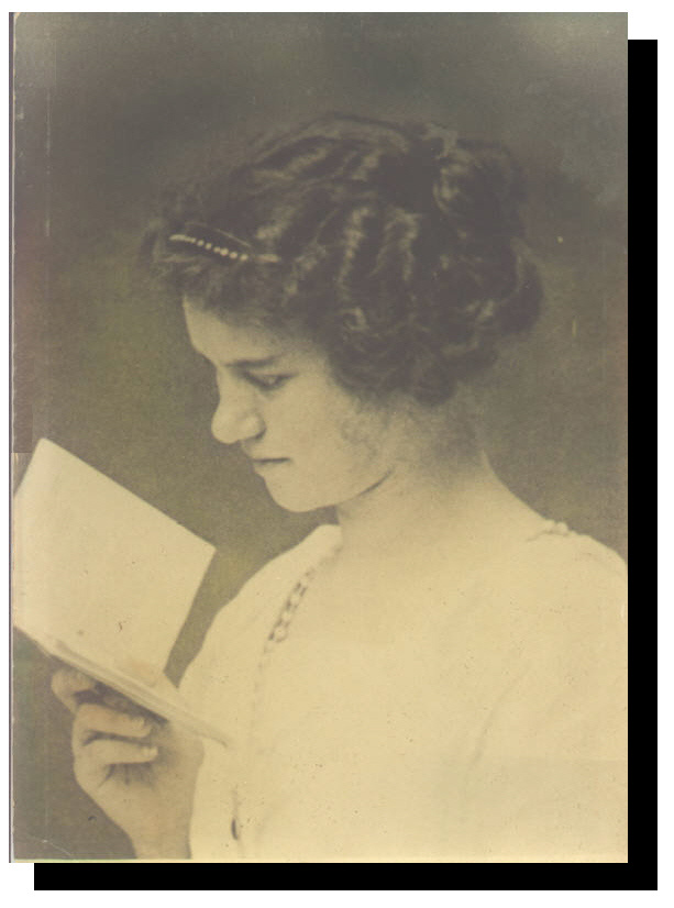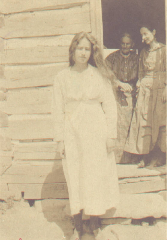 Mary Leona Wilks, my grandmother. She was a daughter of James Rufus Wilks and Oddie Elizabeth Day, grandaughter of Sanders Perfect Day and Permelia Overton, and, William Henry Wilks and Rebecca Overstreet. Mary was born March 25, 1900 and died February 20, 1957 in Callaway Co. Missouri. This picture was taken at the log house just south of Auxvasse, about 1912.