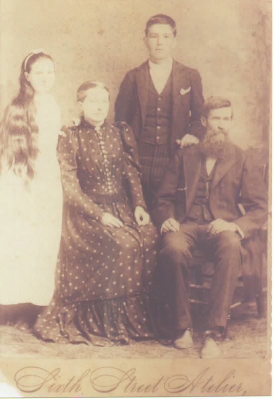 William A.H. Overton and Mattie J. Collard Overton, daughter is Rosa, youngest boy is Thomas. This picture was taken about 1884 in Fort Worth Tarrant Co. Texas. William was a son of Benjamin Francis Overton and Ann S. Holt, brother to Permelia Francis Overton Day. He was my third great uncle.