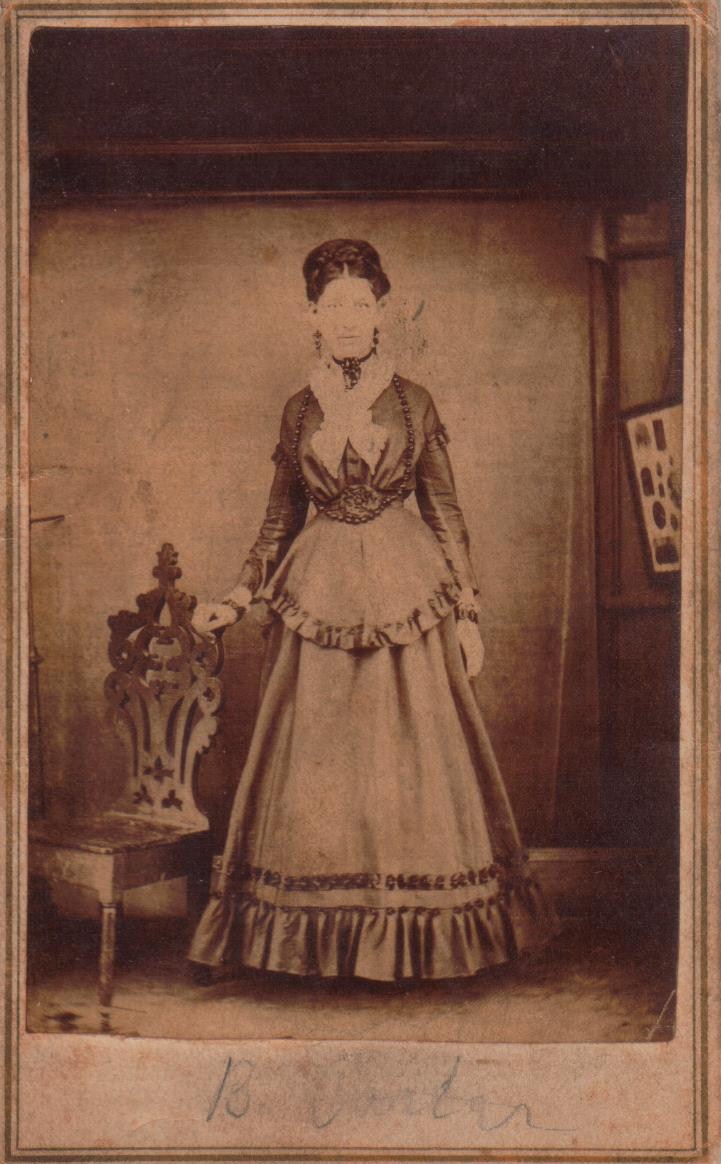 My great grandaunt, Martha Elizabeth "Bettie" Carter. She was a daughter of John G. Carter and Matilda Jane Herring. This picture probably taken mid to late 1870's, Fulton, Missouri. |