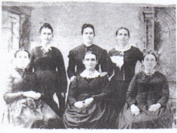 Daughters of Reuben and Sarah Simco; sitting from left to right: Sallie Simco Berry (born 1839 married James G. Berry), Harriet Simco Sacre (born 1846 married William Sacre), Mary Francis Simco Herring (born 1835 married Dabney Carver Herring). Standing, Susan Simco Larue (born 1857 married Jacob Larue), Judith Alice Simco Wright (born 1856 married Robert A. Wright), and Lucy Jane Simco Herring (born 1838 married Gideon Carver Herring).