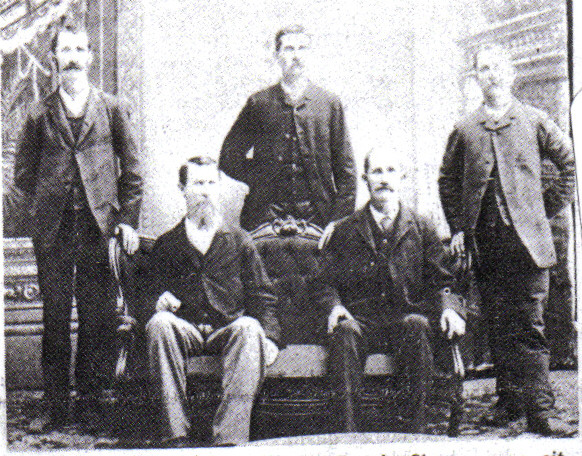 The sons of Reuben B. Simce and Sarah Cowherd Hill; sitting from left to right: Dirret S. Simcoe (born 1849 married Mary Francis Stultz), James W. Simcoe (born 1841 married Mary Turner), standing: George Henry Simcoe (born 1852 married Eliza Marshall), Charles Canada Simcoe (born 1859 married Clarrisa Jane Roberts), and John Franklin Simcoe (born 1851 married Laura Fox).
