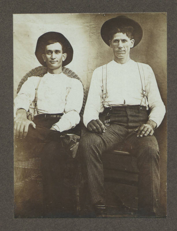 On the back of this picture was written Day - James. It has always been family legend that Saunders Perfect Day (my 2nd Great Grandfather) was aquainted with the James brothers. He was the same age as Frank James, he lived in the same area of Missouri during the right time period. Whether this is actually a picture of one of the James boys and Sanders Day or not I don't know. Approx. date of this picture is late 1860's. Some of the Day brothers were part of a gang, Sanders brother William ended up in jail.