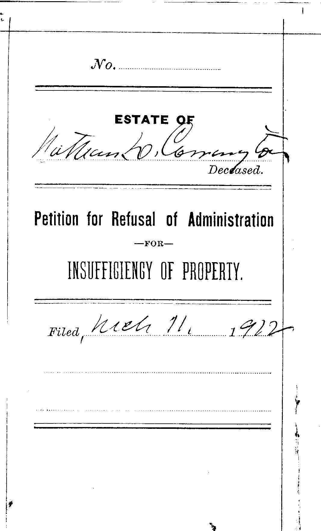 Estate of Nathan D. Carrington Petition for the Refusal of Administration for Insufficiency of Property. Filed March 11, 1912